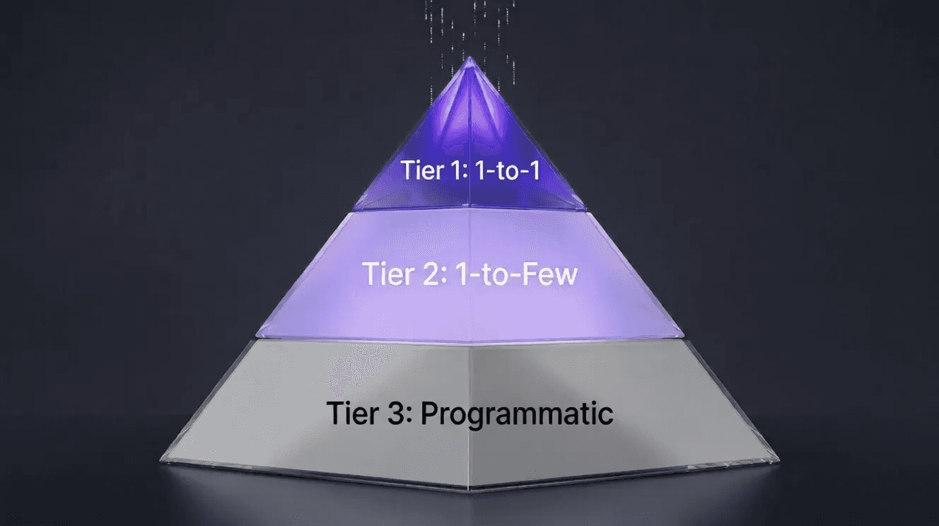 What is the difference between one-to-one, one-to-few, and one-to-many ABM? One-to-one ABM targets a small number of strategic accounts with fully customized campaigns and dedicated resources. One-to-few applies cluster-level personalization to groups of accounts sharing similar characteristics. One-to-many scales ABM motions across large account sets using automation and dynamic content. Enrichment is essential at all three tiers, but the depth of account intelligence required increases significantly as you move toward one-to-one.